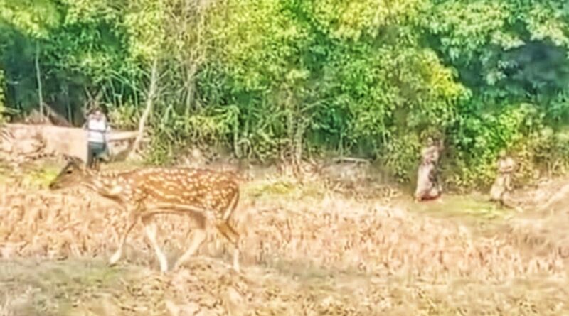 প্রত্যন্ত গ্রামে মাঠে-ঘাটে গৃহপালিত পশুর সঙ্গী হয়ে ঘুরে বেড়াচ্ছে হরিণ,বিরল দৃশ্য পাথরপ্রতিমার জি-প্লটে