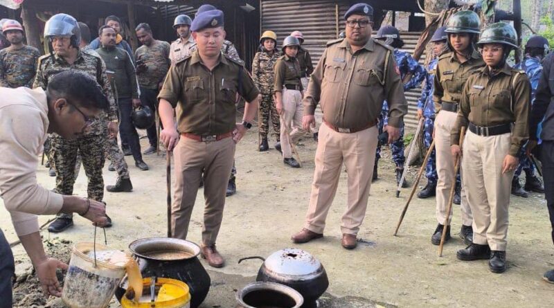 অবৈধ মদের ঠেকে পুলিশি হানায় বিপুল পরিমাণ চোলাই মদ উদ্ধার