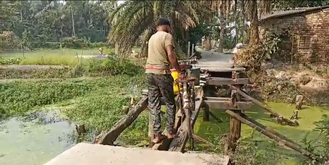 ইয়ামুদ্দিন সাহাজী,মানুষের মতামত:দক্ষিণ ২৪ পরগনার কুলপি বিধানসভার গোপালনগর এলাকায় একটি কাঠের সেতুর ভগ্নদশা নিত্যদিন বিপদের কারণ হয়ে দাঁড়িয়েছে হাজারো মানুষের জন্য।স্থানীয়দের অভিযোগ, দীর্ঘদিন ধরে জরাজীর্ণ অবস্থায় পড়ে থাকা এই সেতুটি এখন কার্যত ব্যবহারের অনুপযোগী হয়ে পড়েছে।তবুও,প্রতিদিন প্রাণ হাতে নিয়েই ছাত্র-ছাত্রী থেকে শুরু করে কর্মজীবী মানুষ এবং বৃদ্ধ-বৃদ্ধারা পারাপার করছেন।