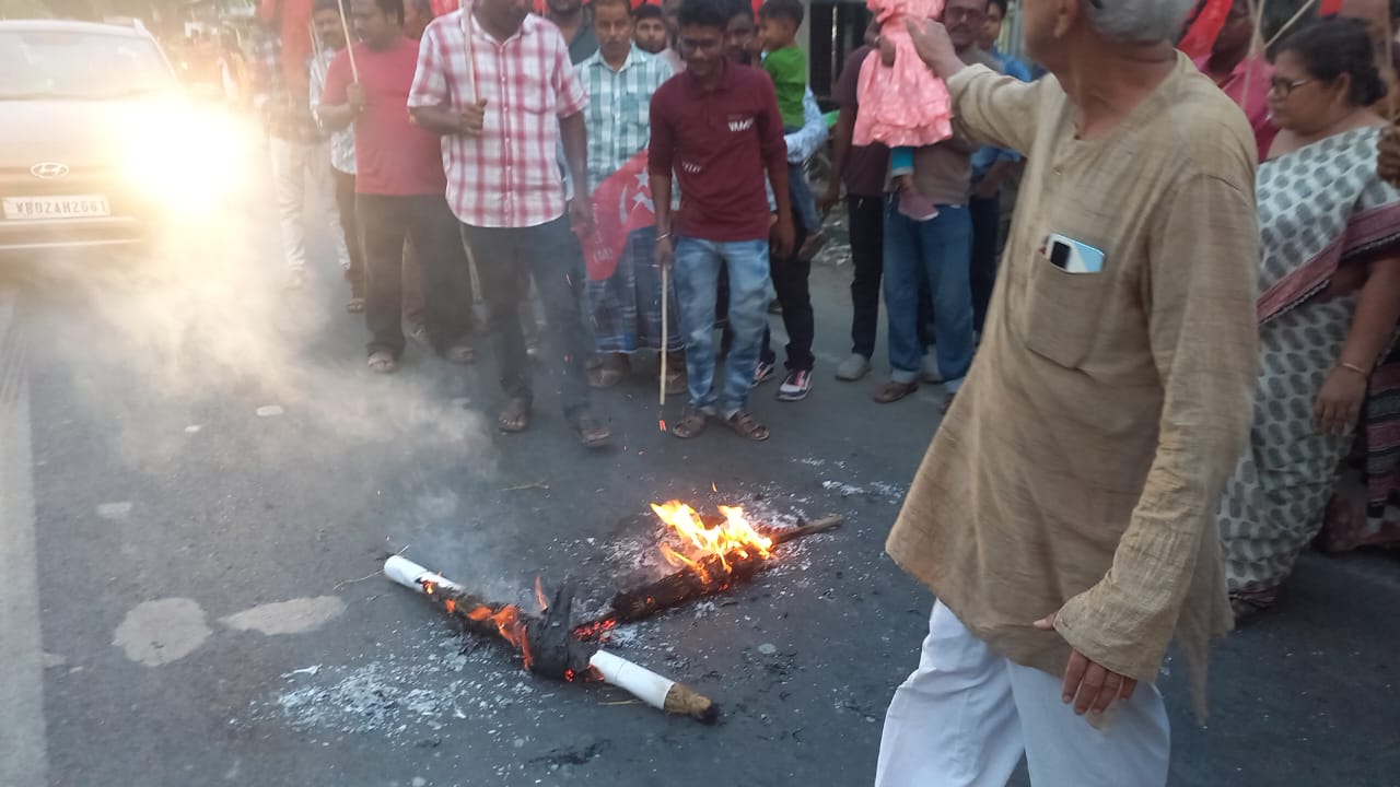 এসএসসি চাকরি নিয়োগের দাবিতে মুখ্যমন্ত্রীর ছবি পুড়িয়ে প্রতিবাদ মিছিল সিপিআইএমের